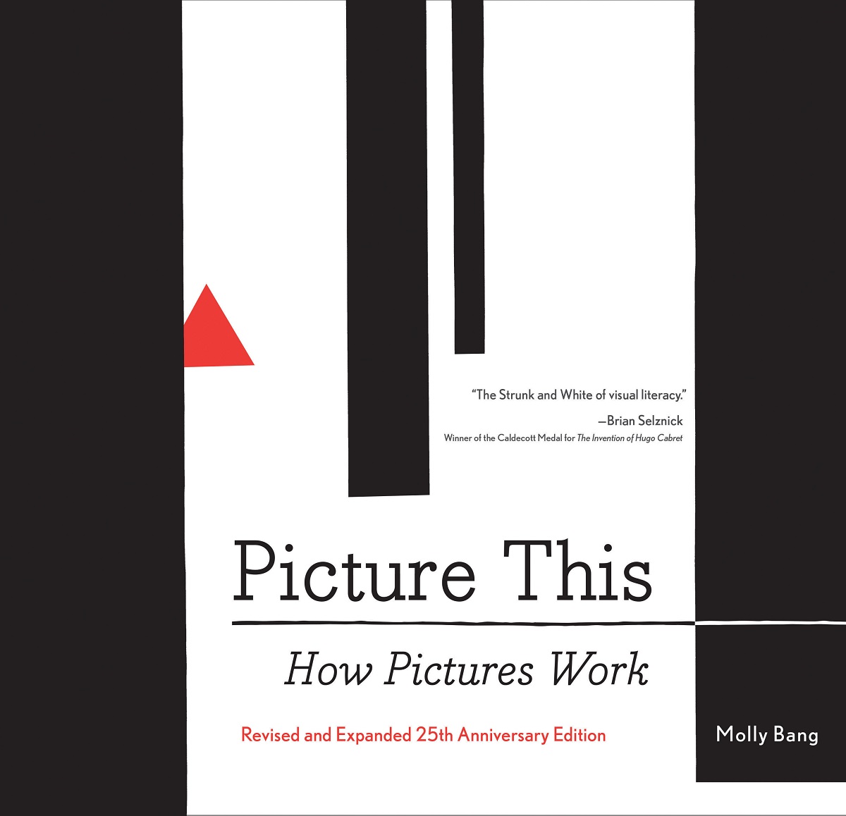 In 1991 picture book author, illustrator, and theorist Molly Bang published a book called Picture This: How Pictures Work, which focuses on how the structural elements of pictures affect readers’ emotions: red is more energetic than blue, diagonals are more threatening than curves, and the placement of objects on the page can indicate the level of safety in the scene. To illustrate her points in Picture This, Bang used the fairy tale “Little Red Riding Hood,” and it’s nearly impossible to read Bethan Woollvin’s Little Red without drawing a comparison to some of Bang’s theories.